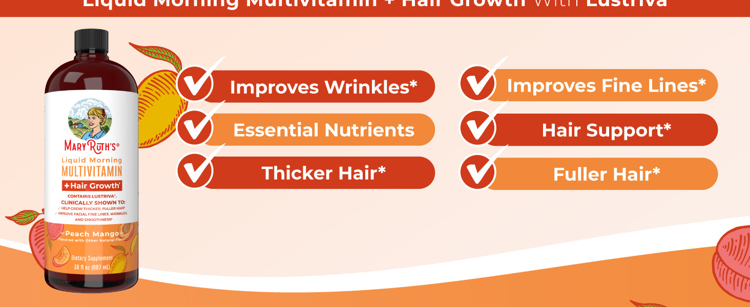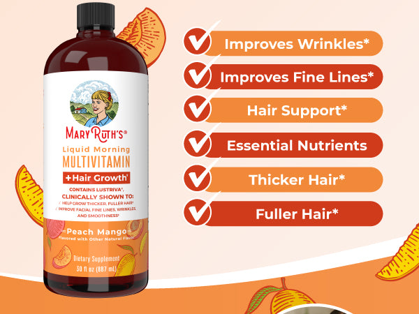 A daily liquid multivitamin designed to support overall wellness plus hair health. It includes biotin, B vitamins, and antioxidants to help maintain strong looking strands and a healthy scalp environment.